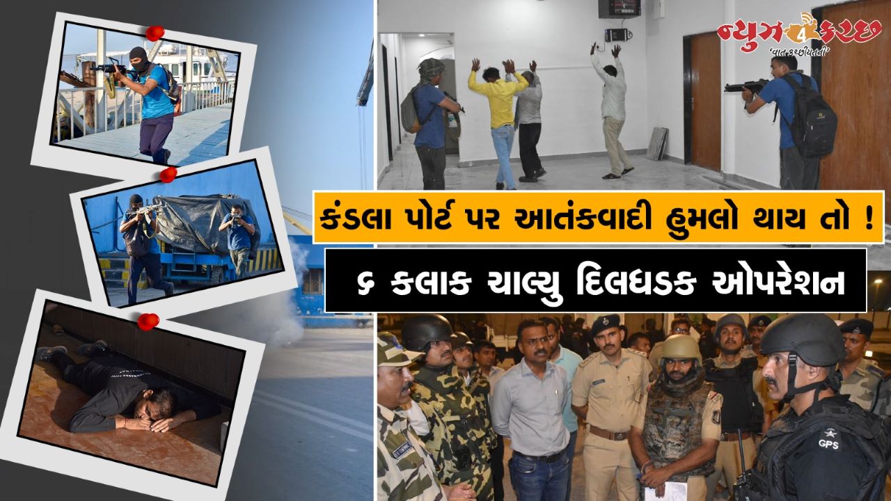 વિશ્વના અનેક દેશો વચ્ચે હાલ યુધ્ધ ચાલી રહ્યુ છે. તેવામાં ભારત પણ ચો તરફ દુશ્મનોથી ધેરાયેલુ છે. તેવામાં દેશમાં દુશ્મન દેશ દ્રારા કોઇ આંતકી ધટનાને અંજામ અપાય તો આવી સ્થિતીને પહોંચી વળવા માટે આપણા સુરક્ષા જવાનો સજ્જ છે ત્યારે દેશના સૌથી મોટુ બંદર કે સરહદી જીલ્લા કચ્છમાં આવેલુ છે. ત્યા આવી કોઇ પ્રવૃતિ થાય તો ? બસ આવા સમયે સુરક્ષા એજન્સીઓના તાલમેલની સમિક્ષા માટે કડંલા દિનદયાળ પોર્ટ ખાતે એક મોકડ્રીલ યોજાઇ હતી. કચ્છના દીનદયાળ પોર્ટ પર આતંકવાદી હુમલો થતાં અફરાતફરી મચી ગઇ હતી.ગુજરાત સરકાર તેમજ કેન્દ્ર સરકારની વિવિધ સુરક્ષા એજન્સીઓ જેમાં પોલીસ, સીઆઈએસએફ, એસઓજી, મરીન ટાસ્ક ફોર્સ, ઇન્ટેલિજન્સ યુનિટ્સ અને ચેતક કમાન્ડો ફોર્સ દ્વારા સંયુક્ત રીતે આ કામગીરી કરી આંતકીઓને ઢેર કર્યા હતા ભલે આ એક મોકડ્રીલ હતી પરંતુ ભારતીય એજન્સીઓએ પોતાની સતર્કતા સાથે આખા સડયંત્રને નિષ્ફળ બનાવ્યુ હતુ. આ મોકડ્રીલમાં ગાંધીધામ મામલતદાર રાહુલ ખાભરા, ચેતક કમાન્ડો ફોર્સના ડીવાયએસપી ડી.વી.ગોહિલ અને કે.એમ.ઝાલા, પૂર્વ કચ્છ પોલીસના ડીવાયએસપી એ.વી.રાજગોર અને મુકેશ ચૌધરી, સીઆરપીએફના ડેપ્યુટી કમાન્ડન્ટ આર.વી. શ્રીમાળી, કંડલા પોર્ટના ટેક્નિકલ આસિસ્ટન્ટ અપૂર્વ જાડેજા,મરીન પોલીસ સ્ટેશન પીઆઈ એ.એમ.વાલા, એસઓજીના પોલીસ ઇન્સ્પેકટર ડી.ડી.ઝાલા, સ્ટેટ આઈબીના પોલીસ ઇન્સ્પેકટર મુકેશ સુથાર સહિત વિવિધ એજન્સીઓના ઉચ્ચ અધિકારીઓ જોડાયા હતા.