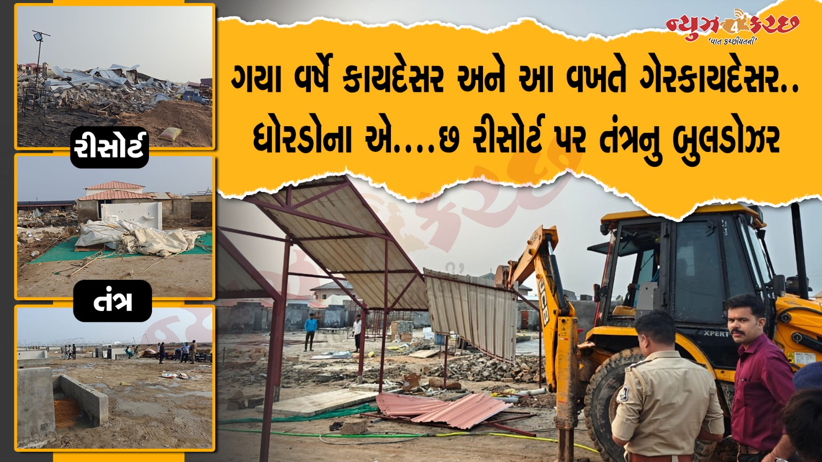 કહેવાય છે ને કે સરકારી તંત્રમાં નિકળી જાય તો હાથી જેટલી ભુલ પણ નિકળી જાય પણ જો તંત્રએ મન બનાવ્યુ હોય તો નાનકડી ભુલ શોધીને પણ કાર્યવાહી કરી જ નાંખે આવુજ કઇક કચ્છમાં જ્યારે લાખો પ્રવાસીઓ આવવાની તૈયારી કરી રહ્યા છે તે વચ્ચે બન્યુ છે. લલુજી એન્ડ સન્સ તથા પ્રવેગ વચ્ચે ચાલેલા રણ ઉત્સવની ટેન્ટસીટીના વિવાદથી તો સૌ કોઇ વાકેફજ છે. તે વચ્ચે આ વર્ષે ફરી લલુજી એન્ડ સન્સને ટેન્ટસીટી નિર્માણનુ ટેન્ડર મળ્યુ છે. જો કે માત્ર ટેન્ટસીટી નહી પરંતુ ધોરડો આસપાસ અનેક નાના-મોટા રીસોર્ટ નિર્માણ પામ્યા છે. જેનાથી હજારો લોકો રોજગારી મેળવી રહ્યા છે. તેવામાં ધોરડો આસપાસની જમીનમાં લોકોની જરૂરીયાત અને વેપારની અપેક્ષાએ સરકાર પાસે જમીનની માંગણી કરી ખાનગી રીસોર્ટ ઉભા કરાયા હતા. જો કે તેમા ભારે વિવાદ સાથે સ્થાનીક લોકોએ આવી મંજુરી સામે રોષ પ્રગ્ટ કર્યો હતો પરંતુ છંતા આવા રીસોર્ટ ધોરડો નજીક બન્યા હતા જ્યા ટેન્ટસીટી સાથે આધુનીક સુવિદ્યાઓ ઉભી કરી દેવામાં આવી હતી. પરંતુ સોમવારે આવા 6 રીસોર્ટ સામે કાર્યવાહી કરવામાં આવી હતી અને ત્યા ઉભુ કરાયેલુ બાંધકામ તંત્રએ દુર કર્યુ હતુ. બીએસએફ ટાવરથી ૬૬ કેવી પાવર હાઉસ સુધીના વિસ્તારમાં કથીત દબાણો દૂર કરાયા હતા.ખાનગી વ્યક્તિઓ દ્વારા ઊભા કરવામાં આવેલ 150 જેટલા ટેન્ટ ખસેડી લેવામાં આવ્યા હતા. અને અહી ઉભુ કરાયેલુ બાંધકામ તોડી પડાયુ હતુ. ગયા વર્ષે આ રીસોર્ટ ઉભા કરવા માટે જગ્યાની મંજુરીને લઇને તંત્રના અધિકારી અને કચ્છના ચુંટાયેલા પ્રતિનીધીઓ વચ્ચે ભારે સીત યુધ્ધ સર્જાયુ હતુ ત્યારે આ વખતે પણ દબાણો દુર થયા બાદ સમગ્ર મામલો ગાંધીનગર સુધી પહોંચે તો નવાઇ નહી. સરહદની સુરક્ષા મામલે પણ કાર્યવાહીની વાત ઉઠી છે. પરંતુ જ્યા સરહદ નજીક આવેલા આવડા મોટા પ્રોજેક્ટને જો સુરક્ષાનો મુદ્દો ન નડતો હોય તો રીસોર્ટ માટે સુકામ તે બાબતનો પણ ગણગણાટ છે.