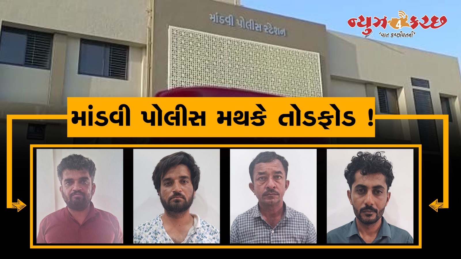 બંદરીય શહેર માંડવીના પોલીસ મથકે ગઇકાલે ભારે અફરા-તફરીના દ્રશ્યો સર્જાયા હતા. અગાઉ ગુન્હામાં સંડાવાયેલા પાંચોટીયાના પુનશી આલા અગઢી સહિતના શખ્સોએ ધમાલ મચાવતા પોલીસ વિભાગમાં દોડધામ મચી હતી. પુનશી ગઢવી સહિતના તેના સાથીદારોએ એક અરજી બાબતે પોલીસ સાથે ડખ્ખો કરી પોલીસ મથકે ભારે ધમાલ મચાવી હતી. જો કે અધિકારીઓ દોડી ગયા હતા અને મામલો થાળે પાડી તમામ સામે કાયદેસર કાર્યવાહી કરી હતી. બનાવ અંગે માંડવીના પીઆઇ સીમ્પીએ વિગતો આપતા જણાવ્યુ હતુ. કે ગઇકાલે એક બુટલેગર સામે કાર્યવાહીમાં પોલીસ વ્યસ્ત હતી તે વચ્ચે પુનશી આલા ગઢવી તેના ભાઇ દ્રારા કરાયેલી એક અરજી બાબતે પોલીસ મથકે પહોચ્યો હતો. અને ડખ્ખો કર્યો હતો. અને આ દરમ્યાન પોલીસ મથકના બારીના કાંચ પણ તોડી નાંખ્યા હતા. બનાવ સમયે તેની સાથે તેનો ભાઇ તથા અન્ય બે શખ્સો પણ હાજર હતા. જે તમામ સામે કાર્યવાહી કરાઇ છે. બનાવની જાણ થતા ડીવાયએસપી સહિતના અધિકારીઓ દોડી ગયા હતા પોલીસે ચારે શખ્સોની ધરપકડ કરી વધુ તપાસ આરંભી છે.આરોપી પૈકીના પુનશી ગઢવીએ અગાઉ પણ પોલીસ દ્રારા તેને માર મારવા સહિતના ગંભીર આક્ષેપો કર્યા છે પરંતુ તપાસમાં આ તમામ બાબતો ખોટી સાબિત થઇ હતી તેવામાં વધુ એકવાર પોલીસ મથકે ધમાલ મચાવી છે. તેના ભાઇ દ્રારા કરાયેલી અરજીમાં યોગ્ય તપાસ ન થતી હોવાની રજુઆત સાથે આ મામલો તોડફોડ સુધી પહોચ્યો હતો. છરી સાથે પોલીસ મથકે થયેલી આ ધમાલમા એક પોલીસ અધિકારીને ઇજા પણ પહોંચી હતી. પોલીસે ગંભીર કલમો હેઠળ ગુન્હો નોંધી કાર્યવાહી કરી છે.