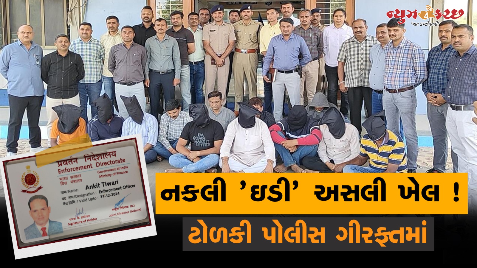 ગુજરાત અને દેશભરમાં ભેજાબાજો એવી એવી રીતે લોકોને ઠગી રહ્યા છે કે તેની કલ્પના પણ કોઇ ન કરી શકે તેમાય ગુજરાતમાં તો તાજેતરમાં પ્રકાશમાં આવેલા નકલી વસ્તુઓના કિસ્સાએ ભારે ચકચાર સર્જી છે નકલી કચેરીથી લઇ અધિકારી અને નકલી જજ સુધીના કિસ્સાઓ ગુજરાતમા પ્રકાશમાં આવ્યા છે તેવામાં હવે ઇડીના નામે ઠગાઇનો ગંભીર કહી શકાય તેવો મામલો ગાંધીધામમાં પ્રકાશમાં આવ્યો છે. આમતો ગઇકાલેજ આ મામલે દિવસભર સમાચારોમાં ચર્ચામા રહ્યો હતો પરંતુ પુર્વ કચ્છ પોલીસે સત્તાવારી રીતે આજે તેની સીલસીલા બંધ વિગતો જાહેર કરી હતી જેમાં એક મહિલા સહિત 12 જેટલા લોકોએ ભેગા મળી ગાંધીધામની રાધીકા જવેલર્સને નિશાને બનાવી હતી અને ઇડીના અધિકારીઓ બની તેની દુકાન ઘર સહિતના સ્થળોએ તપાસ કરી ચોરીની ધટનાને અંજામ આપ્યો હતો પોલીસે સમગ્ર ધટનામાં ગયેલો મુદ્દામાલ ઇડીનુ નકલી આઇડી કાર્ડ સહિતનો મુદ્દામાલ કબ્જે કરી વધુ તપાસ હાથ ધરી છે. પુર્વ કચ્છ જીલ્લા પોલીસવડાએ પત્રકાર પરિષદ યોજી બનાવની સંપુર્ણ વિગતો જાહેર કરી હતી બનાવની વિગતે વાત કરીએ તો તા.૦૨/૧૨/૨૦૨૪ ના રોજ ઝડપાયેલા આરોપીઓએ ગાંધીધામ ખાતે આવેલી રાધીકા જવેલર્સ પેઢી તથા તેમના તથા તેના ભાઈઓના રહેણાક મકાને જઈ ઈ.ડી.ના અધિકારી તરીકે ઓળખ આપી સંગઠીત ટોળકી રચી ઇડીની રેઈડ દર્શાવી ફરીયાદીના મકાનમાં સોના-ચાંદી તથા રોકડ રકમનો મુદ્દામાલ ચેક કરી જાણ બહાર સોનાનો મુદ્દામાલ કિ.રૂ.૨૫,૨૫,૨૨૫/- ની ચોરી કરી હતી ફરીયાદીને કાઇ અજુગતુ લાગતા તેને આ અંગે પોલીસને જાણ કરી હતી જેથી ગાંધીધામ એ.ડીવીઝન પોલીસ સ્ટેશન ખાતે આરોપીઓ સામે બી.એન.એસ.કલમ-૩૦૫,૨૦૪, ૬૧(૨) (એ) મુજબનો ગુનો દાખલ કરવામાં આવ્યો હતો અને તપાસ આરંભાઇ હતી અલગ અલગ ટીમો બનાવી ટેકનીકલ સર્વેલન્સ તથા હ્યુમન સોર્સ તથા સી.સી.ટી.વી. ફુટેજ આધારે ગુનામાં સંડોવાયેલ શખ્સોની ઓળખ મેળવી તેઓને શોધવા માટે અલગ અલગ ટીમો ભુજ,અમદાવાદ તથા ગાંધીધામ ખાતે તપાસ માટે રવાના કરાઇ હતી જેમાં સંડોવાયેલ આરોપીઓને રાઉન્ડઅપ કરી પુછપરછ કરતાં તેઓએ ગુનાને અંજામ આપ્યો હોવાની કબુલાત કરી હતી જેથી નકલી ઈ.ડી ના અધિકારી બનેલ તથા તેના સાગરીતો મળી ૧૧ આરોપી તથા એક મહિલા આરોપીને ચોરીમાં ગયેલ મુદામાલ તથા ગુનામાં ઉપયોગમાં લીધેલા વાહનો સાથે પકડી કાયદેસર કાર્યવાહી કરવામાં આવી છે. જો કે વિપીન શર્મા રહે.અમદાવાદ હજુ આ ગુન્હામાં ફરાર છે જેને શોધવા માટે પોલીસે ચક્રો ગતિમાન કર્યા છે. પોલીસે તપાસ દરમ્યાન સોનાનું બિસ્કીટ,સોનાના લેડીઝ બ્રેસલેટ નંગ-૬,ઈ.ડી.નુ નકલી આઈકાર્ડ,મોબાઈલ ફોન નંગ-૧૩ ચાર વાહનો મળી કુલ રૂ. ૪૫,૮૨,૬૦૯/-નો મુદ્દામાલ કબ્જે કર્યો છે.ઝડપાયેલા આરોપીઓમાં અબ્દુલસતાર ઈશાક માંજોઠી અગાઉ જામનગરના પંચકોશી પોલીસ સ્ટેશનમાં ખંડણી સાથે ખુનનો ગુનો તથા ભુજ સીટી પોલીસ સ્ટેશનમાં ખુનની કોશિષના ગ