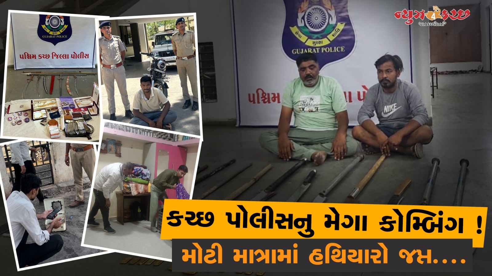 પુર્વ કચ્છે શિકારપુરમાં દબાણ તોડવાથી શરૂ કરેલી કાર્યવાહી બાદ સાત પોલીસ મથકોમાં કોમ્બીંગ સહિત વિજ કનેકશન કાપવા સહિતની કાર્યવાહી કરી તો પશ્ચિમ કચ્છ પોલીસે ભુજમા કોમ્બીંગ સાથે ચેકીંગ દરમ્યાન હથિયારો સોનાના ખોટા બિસ્કીટ સહિતની વસ્તુઓ સાથે આરોપીઓ ઝડપ્યા