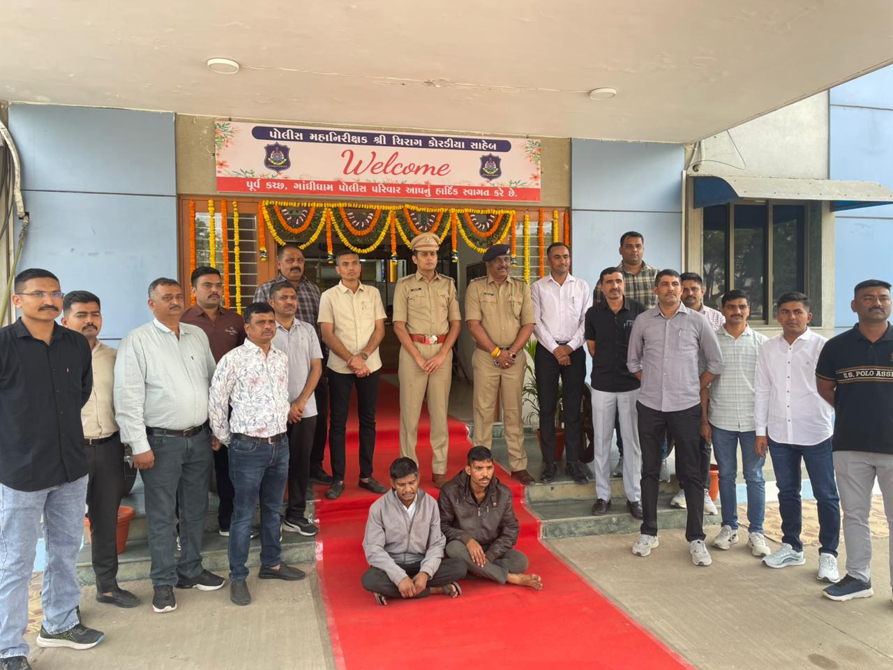 પૂર્વ કચ્છ પોલીસે ફરી એક વખત મોટી ચોરીને અંજામ આપતી ગેંગને રાજસ્થાનના જંગલમાં જઈ પકડી પાડી છે આ પહેલા પણ પૂર્વ કચ્છ પોલીસે આ પ્રકારના ઓપરેશન પાર પાડી આવી ગેંગને પકડવામાં સફળતા મેળવી છે બનાવની વિગતે વાત કરી એ તો ભચાઉ વિસ્તારમાં નમસ્કાર જૈન તીર્થમાં થયેલ ચોરીના ગુનાનો મામલો પ્રકાશમા આવ્યો હતો જેનો ગણતરીના દિવસોમાં ભેદ ઉકેલી રાજસ્થાન રાજયની “ગરાસીયા ગેંગ”ના સાગરીતોને પકડી પડ્યાં છે.ગઇ તા.૨૧-૨૨/૧૧/૨૦૨૫ ના રાત્રિના સમયે ભચાઉ પોલીસ સ્ટેશન વિસ્તારમાં નમસ્કાર જૈન તીર્થ છાડવાડાના પરીસરમાંથી પથ્થરની જાળી તોડી અંદર પ્રવેશી ભગવાનની મુર્તિ ઉપરથી મુગટ,કુંડળ,હાર તથા દાનપેટી તોડી રોકડ રકમની મંદિર ચોરીનો બનાવ બનયો હતો જેને સમગ્ર જૈન સમાજમાં રોષ ફેલાવ્યો હતો જે બાદ આરોપી ને પકડવા માટે પોલીસે અલગ અલગ ટીમો બનાવી હતી જે બાદ પોલીસ અધિક્ષક સાગર દ્વારા તાત્કાલીક ચોરી વાળી જગ્યાની વિઝીટ કરવામાં આવેલ અને આ ચોરીનો ભેદ ઉકેલવા માટે અલગ અલગ ટીમોની રચના કરવામાં આવેલ.જેમાં નાયબ પોલીસ અધિક્ષકશ્રી સાગર સાંબડા સાહેબ ભચાઉ વિભાગ ભચાઉના માર્ગદર્શન હેઠળ પોલીસ ઇન્સપેકટર એન.એન.ચુડાસમા લોકલ ક્રાઇમ બ્રાન્ચ,પુર્વ કચ્છ ગાંધીધામ તથા પોલીસ ઇન્સપેકટર એ.એ.જાડેજા ભચાઉ પો.સ્ટે.નાઓની આગેવાનીમાં અલગ અલગ ટીમો બનાવી હ્યુમન ઇન્ટેલીજન્સ તથા ટેકનીકલ એનાલીસીસ તથા સી.સી.ટી.વી.ના માધ્યમથી આરોપીનું પગેરૂ મેળવતા જેમા મંદિરના પથ્થર ઘસાઇ કામ કરેલ જુના કારીગરો સંકળાયેલ હોવાનું જણાઈ આવતા તે આધારે આરોપીઓની તપાસ કરતા તે આરોપીઓ રાજસ્થાન બાજુ નાશી ગયેલ હોવાનું જણાઇ આવતા રાજસ્થાનના અલગ-અલગ વિસ્તારોમાં ટીમો રવાના કરી આરોપીઓની શોધખોળ કરી રાજસ્થાનનાં ગોગંદા ઘાટીનાં જંગલોમાં રાત્રિના સમયે કરાઇ હતી.સર્ચ કરી (૧) ભીમારામ ઉર્ફે ભીમો સ/ઓ ખુમારામ ગરાસીયા ઉ.વ. ૨૫ રહે.ઉપલા ભીમાણા,પો.સ્ટે.-નાણાં, તા.બાલી,જી.પાલી રાજસ્થાન થતા (૨) મોહનલાલ સ/ઓ સોમારામ ગરાસીયા ઉ.વ. ૩૮ રહે. રહે.ઉપલા ભીમાણા,પો.સ્ટે.-નાણાં, તા.બાલી,જી.પાલી રાજસ્થાન જે પોલીસે પકડી પડ્યાં હતા જ્યારે વધુ તપાસમાં