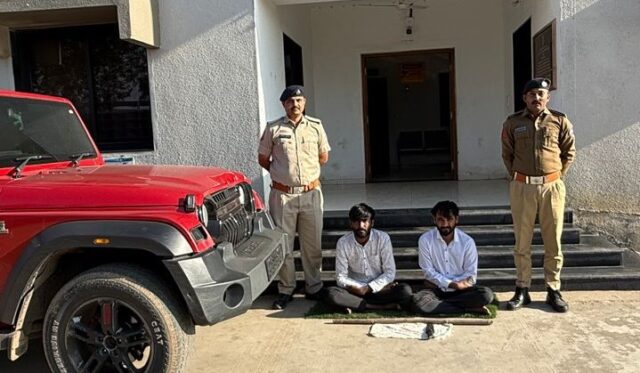 સોશિયલ મિડીયા પર વાયરલ થયેલ એક વિડીયોમાં હાથમા લાકડાના ધોકા અને છરી રાખી વાહનો રોકાવી રોફ જમાવતા નજરે પડતા હતા.લાકડીયા પોલીસે થાર સાથે બે શખ્સોને ઝડપ્યા