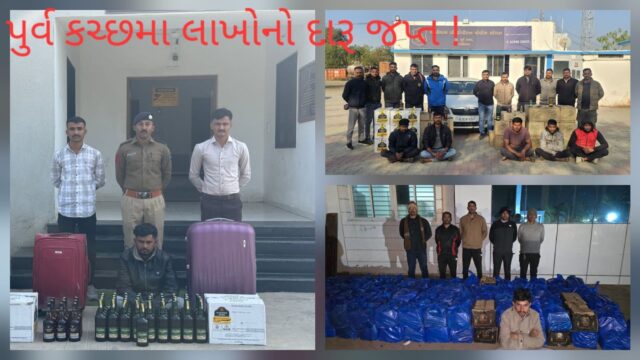 પુર્વ કચ્છ લોકલ ક્રાઇમ બ્રાન્ચે ગાંધીધામમાં ફિલ્મી ઢબે ૩૧.ર૦ લાખનો શરાબ પકડ્યો ત્યા પડાણા વિસ્તા૨માંથી ૧૦ લાખથી વધુના દારૂના ગણનાપાત્ર કેસ ગાંધીધામ “બી” ડીવીઝન પોલીસે પકડ્યો તો લાકડીયા પોલીસે પણ કારમાંથી દારૂનો જથ્થો ઝડપ્યો એક દિવસમાંજ ત્રણ દરોડાએ કચ્છમાં બેફામ દારૂ ધુસાડવાના બુટલેગરના મનસુબા દેખાડ્યા