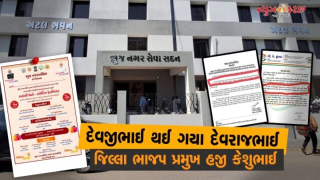 ભુજ નગરપાલિકાના વહીવટથી લોકો ત્રસ્ત છે. તેવામાં એક સામાન્ય કહી શકાય તેવા મહત્વના નામ અને હોદ્દાની પણ જો જવાબદારોને ખબર ન રહેતી હોય તો પાલિકાનો વહીવટ કેવો ચાલતો હશે તેનો અંદાજ લગાવી શકાય પાલિકાના મતે જીલ્લા ભાજપ પ્રમુખ દેવજીભાઇ નહી પરંતુ દેવરાજ છે. અને જીલ્લા ભાજપના પ્રમુખ તો હજુ પણ કેશુભાઇ છે.