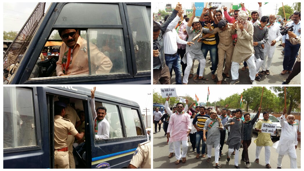 દેશભરમાં ભાજપ સરકારથી નારાજ ખેડૂતો દ્વારા કરાઈ રહેલા વિરોધના સમર્થનમા કોંગ્રેસે રાજ્યવ્યાપી દેખાવો સાથે વિરોધ દર્શવ્યો હતો. ભુજ મધ્યે સરદાર પટેલની પ્રતિમાની સામે વિરોધ સાથે રસ્તા ઉપર ઉતરી કચ્છ જિલ્લા કોંગ્રેસે ભાજપ સરકાર વિરુદ્ધ બેનરો અને સૂત્રોચ્ચાર સાથે હલ્લાબોલ કર્યો હતો. કચ્છ જિલ્લા કોંગ્રેસ પ્રમુખ નરેશ મહેશ્વરીએ ન્યૂઝ4કચ્છ સાથે વાત કરતા ભાજપ સરકારના રાજમાં ખેડૂતો હેરાન પરેશાન થઈને આત્મહત્યા કરી રહ્યા હોવાનો આક્ષેપ કર્યો હતો. કોંગ્રેસ પ્રમુખે જણાવ્યું હતું કે નર્મદાની વાતો માત્ર પ્રચાર માટે છે,પણ વાસ્તવિકતા એ છે કે પાણી જ નથી મળતું એટલે પાક સુકાઈ રહ્યો છે, વીજળી ૨૪ કલાકની વાતો હવામાં છે, વીજ કાપ હોઈ મોટરો ચાલતી નથી, ખેડૂતોને પાકના પોષણક્ષમ ભાવો મળતા નથી અને ખુલ્લા બજારમાં અનાજ શાકભાજીના ભાવો આસમાનને આંબે છે,લોકો મોંઘવારી થી ત્રસ્ત છે, એપીએમસી,માર્કેટયાર્ડ પણ નિષફળ છે, ઉદ્યોગપતિઓ કરોડોની લોન લઇ ભરતા નથી અને ખેડૂતોની દેવામાફીની જાહેરાતો વચ્ચે બેંકો કડકાઇથી નાણાંની વસૂલાત કરતી હોઇ ખેડૂતો શાહુકારો પાસે થી ઊંચા વ્યાજે નાણાં લઈને દેવામાં ફસાય છે અને અંતે આપઘાત કરે છે. આવા અનેક મુદ્દાઓ સાથે કોંગ્રેસે સ્પષ્ટ પણે આક્ષેપ કર્યો હતો કે ભાજપના રાજમાં ખેડૂતો દુઃખી દુઃખી છે. કેન્દ્રની ભાજપ સરકાર ખેડૂત વિરોધી છે. આશ્ચર્યજનક કાર્યક્રમ આપતા કોંગ્રેસના કાર્યકરોએ ભાજપ સરકારના છાજિયા લીધા હતા. ત્યારબાદ એકાએક રસ્તા રોકવાનો પ્રયાસ કરાતા પોલીસે કચ્છ કોંગ્રેસના ૫૦ જેટલા કાર્યકરોની અટકાયત કરી હતી.આ વિરોધ કાર્યક્રમમાં કચ્છ કોંગ્રેસના જિલ્લા પ્રભારી પ્રદ્યુમ્નસિંહ જાડેજા(જામનગર), પ્રમુખ નરેશ મહેશ્વરી, આદમ ચાકી, નવલસિંહ જાડેજા, રસિક ઠક્કર, રાજેન્દ્રસિંહ જાડેજા,રફીક મારા, ફકીરમામદ કુંભાર, ઘનશ્યામસિંહ ભાટી, ગની કુંભાર, રમેશ ધોળુ સહિતના આગેવાનો જોડાયા હતા. જોકે, કોંગ્રેસના રાજ્યવ્યાપી આ વિરોધમાં કચ્છના બે કોંગ્રેસી ધારાસભ્યો પ્રદ્યુમ્નસિંહ જાડેજા અને સંતોક બેન પટેલ ની ગેરહાજરી દેખાઈ હતી.