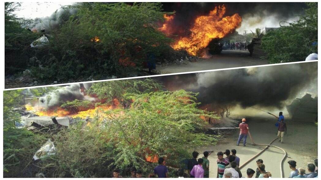 ગાંધીધામ જી.આઇ.ડી.સી વિસ્તારમાં ઝોન-એમાં આવેલા એક ભંગારના વાડામાં આજે બપોરે અચાનક ભિષણ આગ લાગી હતી. આગ એટલી ભંયકર હતી કે જોતજોતમાં આગે વિકરાળ સ્વરૂપ ધારણ કર્યુ હતુ. અને ભંગારના વાડાની સાથે આસપાસ આવેલા 3થી વધુ કાચા મકાનોને ઝપેટમાં લીધા હતા. જેને લઇને થોડા સમય માટે અફરાતફરીનો માહોલ સર્જાયો હતો. સ્થાનીક લોકોએ મકાનમાં લાગેલી આગ પર કાબુ મેળવવા પ્રયત્ન કર્યો હતો જો કે ત્યાર બાદ તાત્કાલીક ગાંધીધામ નગરપાલિકા અને ઇમરજન્સી રીસ્પોન્સ ટીમની ફાયર ટીમ ઘટના સ્થળે પહોંચી હતી. અને ત્રણ ફાયર ફાઇટરો વડે આગ પર કાબુ મેળવવા માટે પ્રયત્નો શરૂ કર્યા હતા. જો કે સમયસુચકતાથી મોટી જાનહાની ટળી હતી કેમકે આગને પગલે આસપાસમાં આવેલા ત્રણ કાચા ભુંગા માં (મકાનમાં) પણ આગ પ્રસરી હતી. જો કે તેમા વસતા કામદારો તેમાથી બહાર નિકળી ગયા હતા પરંતુ મકાનમાં રહેલ ઘરવખરી બળીને ખાખ થઇ ગઇ હતી. તો આગના વિકરાળ સ્વરૂપને જોતા લોકો પણ મોટી સંખ્યામાં ઘટના સ્થળે પહોંચ્યા હતા અને દુરદુર સુધી આગની જ્વાળાઓ ફેલાઇ હતી. જો કે હાલ મહદઅંશે આગ પર કાબુ મેળવી લેવાયો છે. અને સમયસુચકતાથી મોટી જાનહાની ટળી છે. હાલ ફાયરફાઇટરની ત્રણ ગાડીઓ આગ પર સંપુર્ણ કાબુ મેળવવા માટે કામ કરી રહી છે. જો કે આગ લાગવાનુ ચોક્કસ કારણ હજુ સામે આવ્યુ નથી.