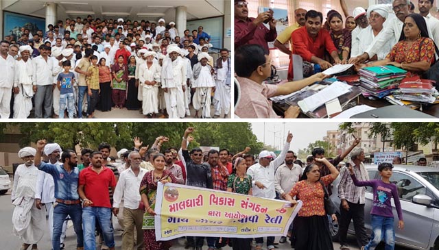 છેલ્લા ઘણા સમયથી જમીન દબાણના વધી રહેલા કિસ્સાઓ વચ્ચે તંત્રના મૌનથી અકળાયેલી કચ્છની ગ્રામીણ પ્રજામાં ગુસ્સો વધતો જાય છે. આજે જંગી ગામની ગૌચર જમીનના મુદ્દે માલધારીઓ ભુજના રસ્તા ઉપર ઉતર્યા હતા.માલધારી વિકાસ સંગઠનના નેજા તળે માલધારીઓએ રેલી તેમ જ બેનર સાથે જંગી(ભચાઉ ના પશુધન માટેની ગૌચર જમીન પર કરાયેલા જમીન દબાણ સામે આક્રોશ દર્શાવ્યો હતો. કચ્છ જિલ્લા વહીવટીતંત્રનું ધ્યાન દોરતા કલેકટરને અપાયેલા લેખિત આવેદનપત્રમાં જંગી ગામમાં ૨૯૦૦૦ જેટલા પશુધન માટેની ગૌચર જમીન ઉપર ભૂમાફિયાઓ અને અસામાજિક તત્વોએ કબજો કરી લીધો હોવાની ફરિયાદ કરી હતી. ઉંટ, ઘેટાં-બકરા અને ગાયો ધરાવતા જંગીના પશુપાલકો માટે માત્ર ૯૦ એકર જમીન જ છે. પરિણામે ૨૯૦૦૦ પશુઓને ચરાવવા કેમ? એ પ્રશ્ન માલધારીઓને સતત મૂંઝવે છે. માલધારી વિકાસ સંગઠને સરકારી સર્વેને ટાંકતા જણાવ્યું છે કે ૧૦૦ પશુઓ માટે ૪૦ એકર જમીન જોઈએ પણ જંગીમાં ૨૯૦૦૦ પશુઓ માટે માત્ર ૯૦ એકર જ જમીન ઉપલબ્ધ છે. ચારિયાણના અભાવે પશુપાલન કરવું મુશ્કેલ બની રહ્યું છે. વિશાળ સંખ્યામા ઉપસ્થિત માલધારીઓ વતી લેખિત સહી સાથેનું આવેદનપત્ર આપતા માલધારી વિકાસ સંગઠનના કન્વીનર ગોવાભાઈ રબારી, કચ્છના પ્રમુખ વિભાભાઈ રબારી, કાનાભાઈ રબારી અને જેસાભાઈ રબારી સહિતના આગેવાનોએ ચીમકી આપી છે કે જો ૧૦ દિવસમાં તંત્ર પગલા નહીં ભરે તો ગાંધી ચીંધ્યા માર્ગે માલધારીઓ આંદોલન કરશે.