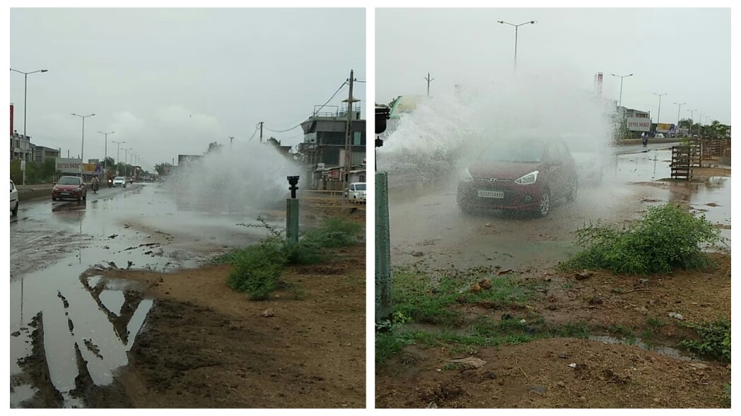 કચ્છમાં ભલે વરસાદે બે દિવસથી દસ્તક આપી હોય પરંતુ જો કચ્છમાં વરસાદ ખેંચાય તો પાણીની વિકટ સ્થિતી ઉભી થાય તેમાં કોઇ શંકા નથી પરંતુ હાલ જ્યારે વરસાદે વિરામ લીધો છે. ત્યારે ગાંધીધામમાં બેદરકારીનો માનવસર્જીત વરસાદ વરસ્યો હતો જેમાં લોકો ભલે ન ભીંજાયા પરંતુ વાહનચાલકોએ વાહનોની સફાઇ કરી આ પાણીનો ભરપુર લાભ લીધો જો કે સૌથી દુખદ વાત એ હતી કે જ્યારે કચ્છમા એકએક પાણીના ટીંપાની હાલ કિંમત છે ત્યારે ગાંધીધામના રામબાગ રોડ પર આવેલા નર્મદાના એરવાલ્વમાં લીકેજ થતા હજારો લીંટર કિંમતી પાણી વેડફાયુ હતુ જો કે ત્યાથી પસાર થતા લોકોમા દુખદ આશ્ર્ચર્ય એ હતુ કે કલાકો સુધી પાણી વેડફાતુ રહ્યુ પરંતુ તંત્રના કોઇ અધિકારીઓ તેની મરામંત માટે સમયસર પહોંચ્યા નહી જેને લઇને વગર વરસાદે આ વિસ્તારમાં પાણીનુ તળાવ ભરાયુ તો રસ્તા પરથી પસાર થતા કેટલા વાહન ચાલકોએ પોતાના વાહન પણ પ્રેસરથી વેડફાઇ રહેલા પાણીમા ધોઇ નાંખ્યા.