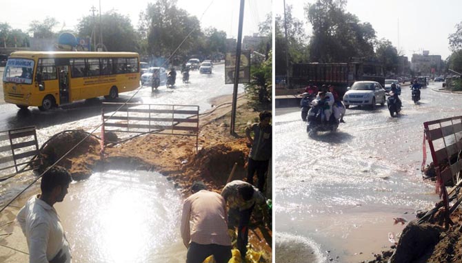 ન્યુઝ4કચ્છ :એક તરફ ભુજ સહિત સમગ્ર કચ્છમાં પાણીની વિકટ સ્થિતી છે. અને ઉનાળામાં હજુ પણ પાણીની વિકરાળ સ્થિતી થવાની છે. તે વચ્ચે આજે ભુજમાં જીલ્લા ઉદ્યોગ કેન્દ્ર નજીક પાણીની લાઇન તુટી પડતા હજારો લીટર પાણીનો વેડફાટ થયો હતો. ભુજના વિવિધ વોર્ડમાં એક તરફ પાણીની સમસ્યા છે. અને તે વચ્ચે આજે બપોરે જીલ્લા ઉદ્યોગ કેન્દ્ર પાસે ગેસ લાઇનનુ કામ કરી રહેલી એજન્સી દ્રારા કામ દરમીયાન લાઇન તુટી જતા હજારો લીટપ પાણી વડેફાઇ ગયુ હતુ. પાણીની વીકટ સ્થિતી વચ્ચે હજુ સુધી પાલિકાની ટીમ લાઇન રીપેરીંગ માટે પહોંચી નથી. અને જીલ્લા ઉદ્યોગ કેન્દ્રના સમગ્ર રસ્તા પર પાણીની નદી વહી નિકળી છે. જો કે ભુજ તો અનેકવાર આ રીતે ખાનગી કંપનીઓની કામગીરી દરમીયાન આવી ધટના બની છે. પરંતુ હાલ જ્યારે પાણીની તંગી છે. તે વચ્ચે પાણીનો હજારો લીટર જથ્થો વહી નિકળતા પાણીનો વ્યય થયો હતો