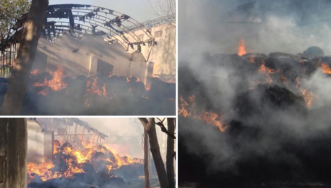 કચ્છમાં હજુ ઉનાળમા પશુઓ માટે ઘાસની કઇ રીતે વ્યવસ્થા કરવી તેનો એકશન પ્લાન તંત્ર તૈયાર કરી રહ્યુ છે પરંતુ અત્યારે જે છે તેની જાળવણી પણ થતી નથી તેવી ઘટના સામે આવી છે આજે લખપતના માતાનામઢ સ્થિત વનવિભાગના ગોડાઉનમા આગ લાગી હતી જેમા કિંમતી કહી શકાય તેવો જથ્થો પશુના મુખમાં જવાને બદલે સ્વાહા થઇ ગયો હતો આગ એટલી વિકરાળ હતી કે જોતજોતામાં હજારો ઘાસની ગાંસડીઓ બળીને ખાખ થઇ ગઇ હતી બનાવને પગલે વનવિભાગ અને પ્રાઇવેટ ટેન્કરો એ આગ પર કાબુ મેળવવા પ્રયત્ન કર્યો હતા જે 8 વાગ્યા સુધી પણ ચાલુ છે વનવિભાગે દુષ્કાળ જેવી સ્થિતિમાં પશુઓ માટે આ ઘાસનો જથ્થો સંગ્રહ કર્યો હતો પરંતુ તે પશુઓ સુધી પહોંચે તે પહેલા બળીને રાખ થઇ ગયો હતો
